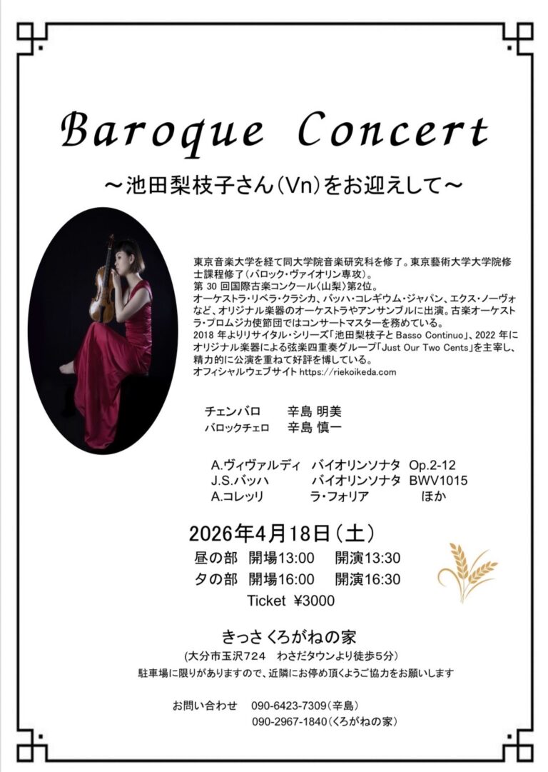 リサイタルシリーズ 池田梨枝子とBasso Continuo vol.6 開催!!